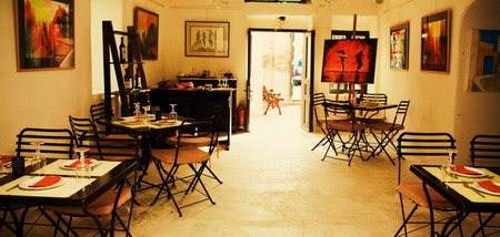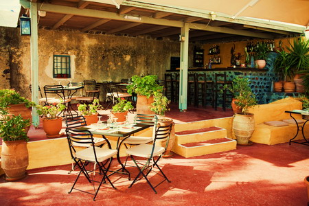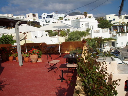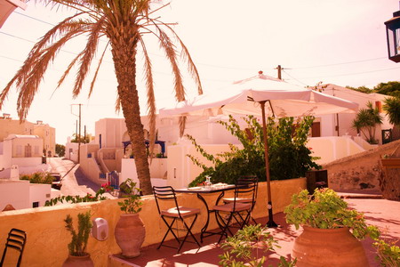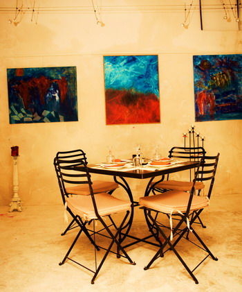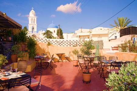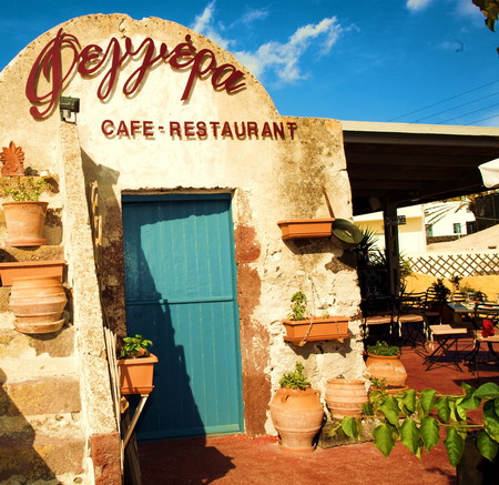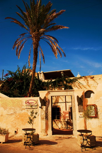 An old stone house at the traditional settlement of Megalochori became an art center and a coffee restaurant.
