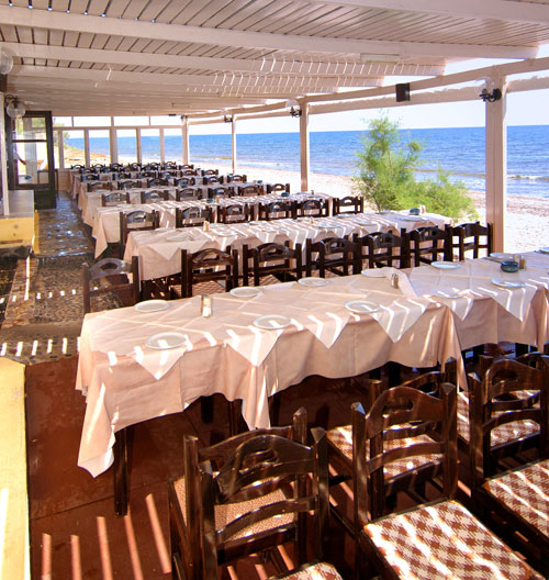 The beach of Agia Paraskevi in Monolithos, located on the beach barbecue restaurant Mario No1.