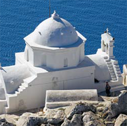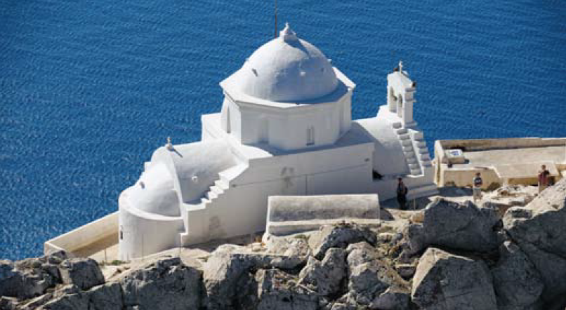 Aghios Nikolaos, Koimisi, Aghios Charalambos, Christos tou Stavrou, Aghii Anargyri和Aghios Georgios教堂占据在Chora城的城堡顶部。此外,考古收藏馆还展出了古阿纳菲的重要发现。在岛屿的东部,你会发现壮观的岩石,一个石灰石巨石,它的顶峰被称为Kalamos。Kalamos是地中海第二大巨石,仅次于直布罗陀;这是岛上最令人印象深刻的自然景观,成为颇受攀岩者欢迎的挑战。事实上,18世纪的法国旅行家约瑟夫·皮顿·德·图尔纳福特(Joseph Pitton de Tournefort)称它为“世界上最令人生畏的岩石”。