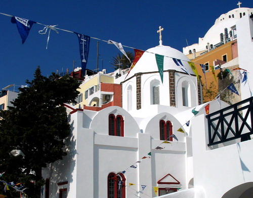 On the feasts of Panayia Myrtidiotissa at Kamari, Panayia Platsani at Oia, Stavros at Emporio, Profitis Ilias, and on the Assumption of the Virgin on August 15, folk festivals are organized after religious services with food, wine, and dancing. ZH